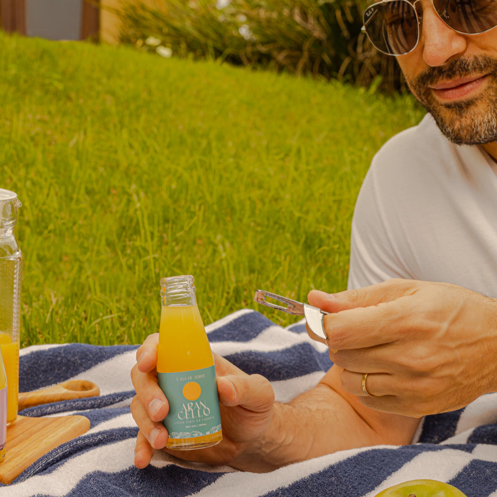 Feito com cascas de laranjas sanguíneas selecionadas, álcool de cereais, água e açúcar, o Arancello Casa de Zorzi é 100% artesanal e natural, sem conservantes ou estabilizantes.
